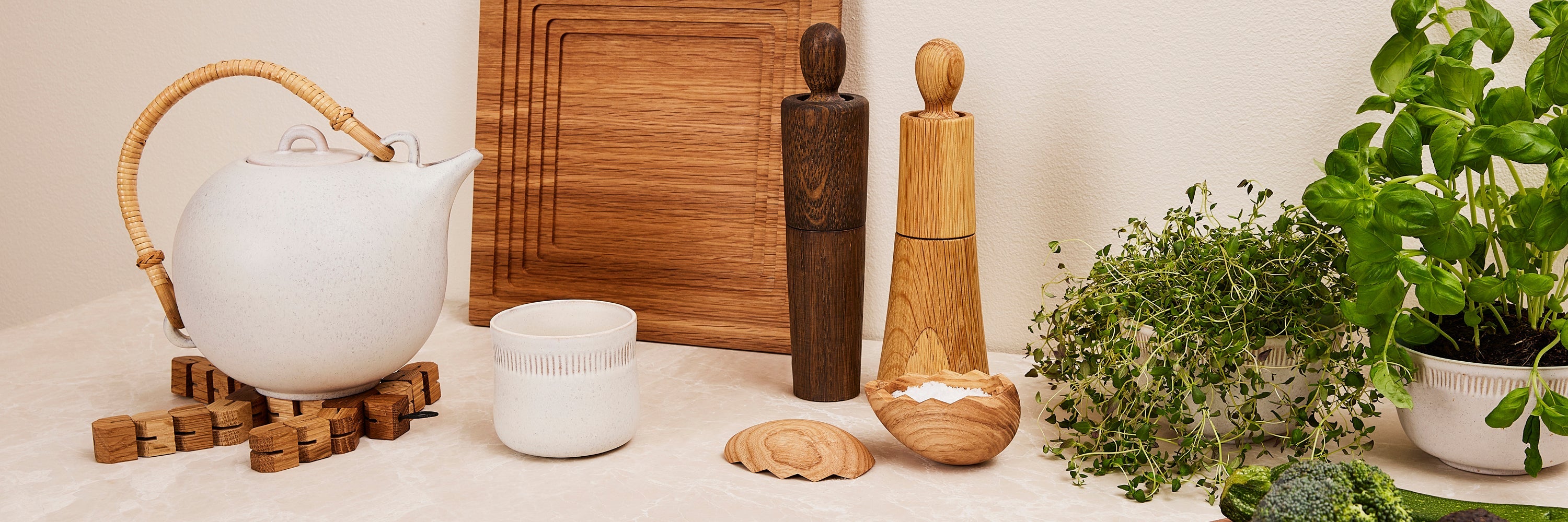 We have several functional and decorative salt and pepper grinders. We’d like to draw your attention to Mr. Pepper & Mrs. Salt from mencke&vagnby. These two fine figures are made in a simple design that looks almost as though it has been cast as one piece. The smart thing about these grinders is that you turn them upside down to grind. This avoids leftover salt and pepper on the table after you have ground it.